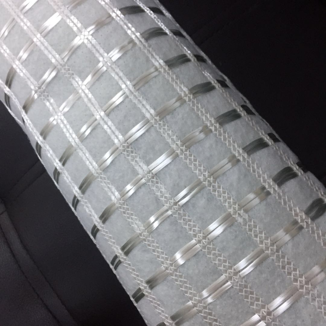 玻纤复合土工布是以玻璃纤维为增强材料,通过与短纤针刺无纺布复合而成。 玻纤复合土工布不同于一般机织布。其最大特点是经线与纬线的交叉点不弯曲,各自处于平直状态。用捆绑线将两者捆扎牢固,可全面较均匀同步,承受外力,分布应力,且当施加的外力撕裂材料的瞬时,纱线会沿初裂口拥集,增加抗撕裂强度。